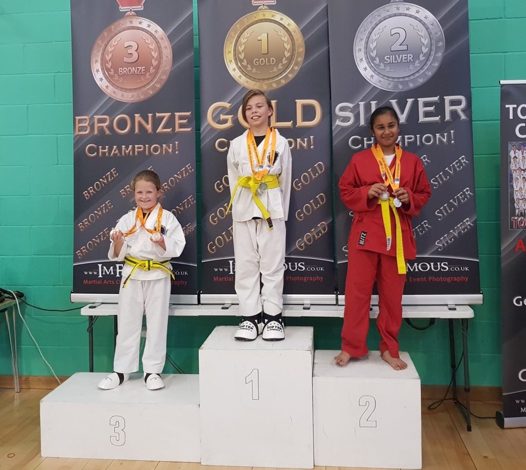 At the Heart of England TKD Summer Championships on 30th June, our three fighters won 7 medals: 3 gold, 1 silver and 3 bronze. Little Olly Gargan had a particularly successful day, winning FOUR medals – 2 gold and 2 bronze – all to himself!